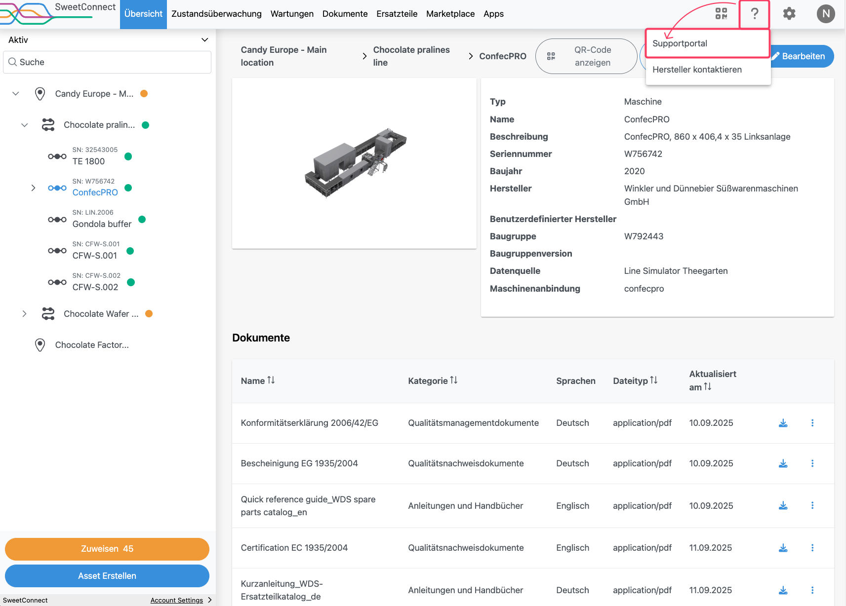 Öffnen Sie Ihr SweetConnect-Profil, klicken Sie auf das Fragezeichen-Symbol und rufen Sie das Support-Portal von dort aus auf.