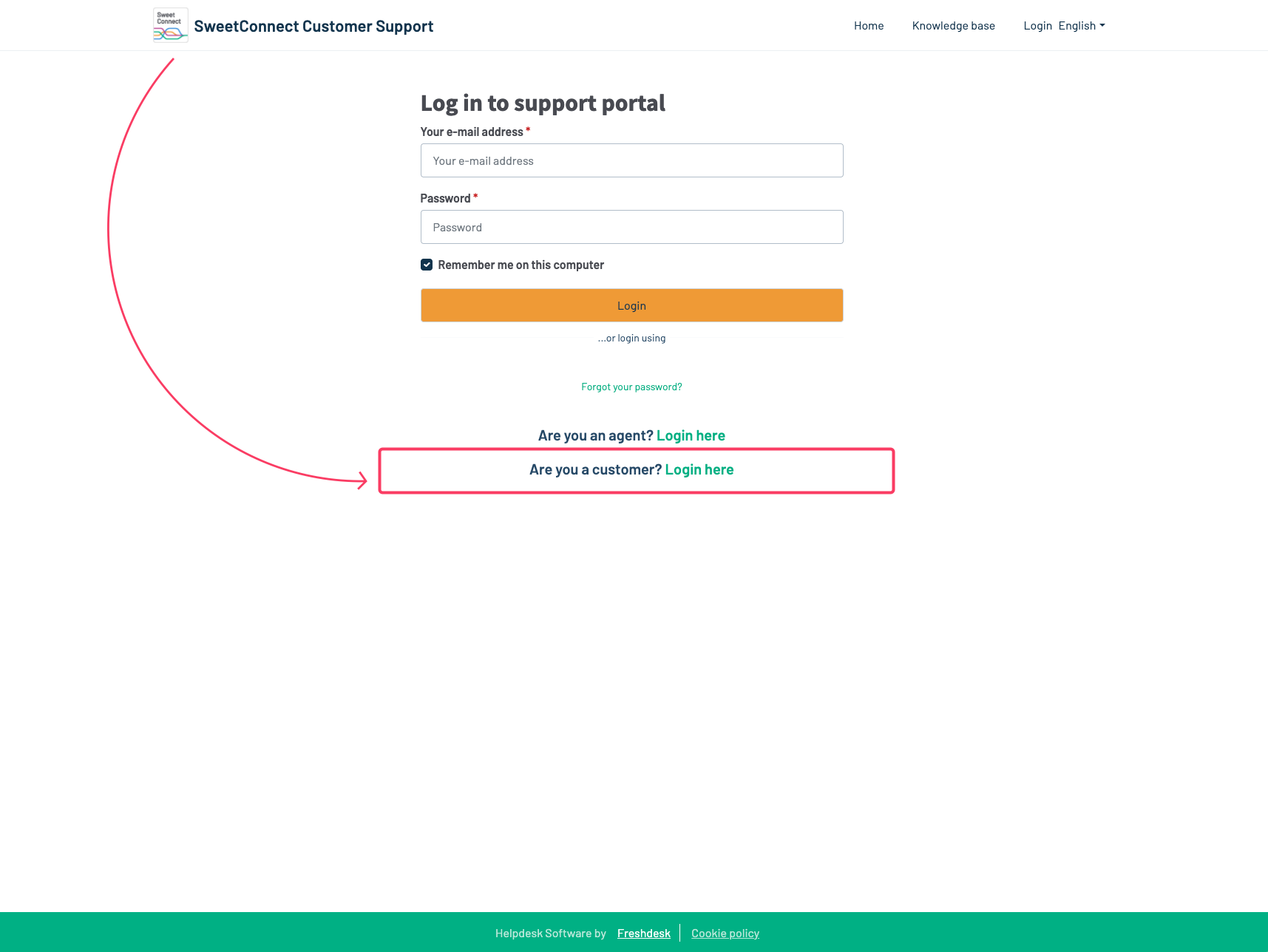 oderGehen Sie zu support.sweetconnect.io, wählen Sie „Sind Sie Kunde?“ und melden Sie sich mit Ihren SweetConnect-Zugangsdaten an.